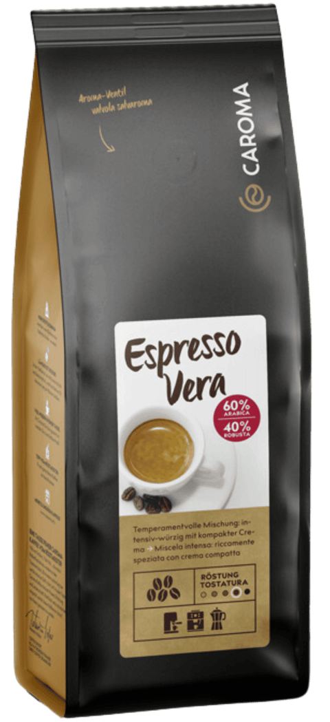 "Espresso Vera" ist die kräftigste Kaffeemischung au sdem Hause Caroma.